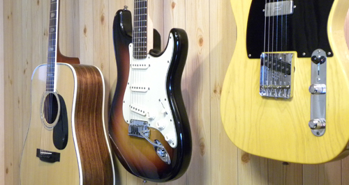 有名メーカーのギターは1レッスン500円でお貸しします。